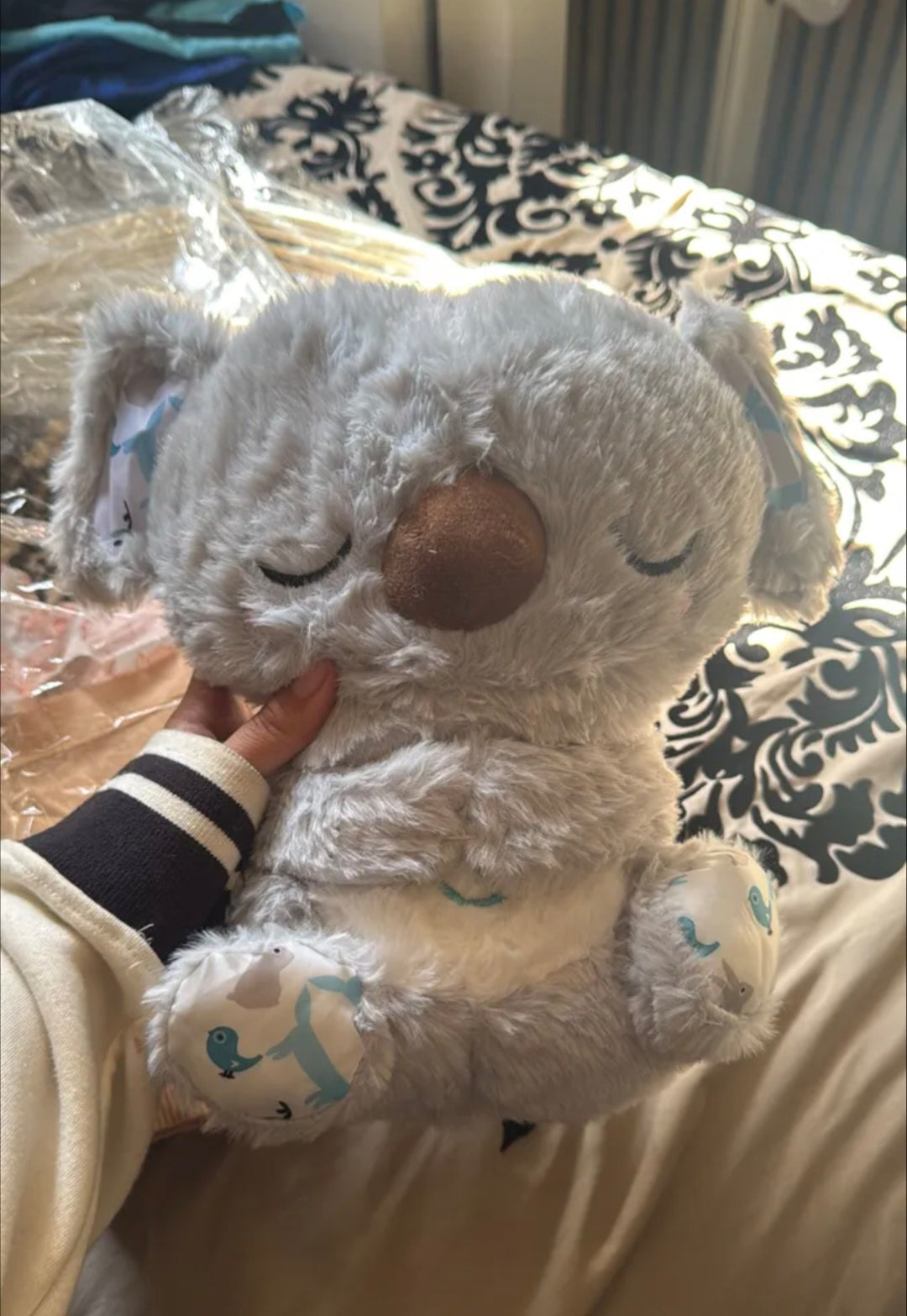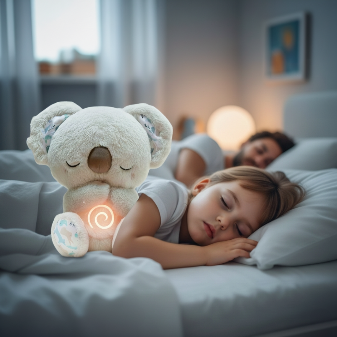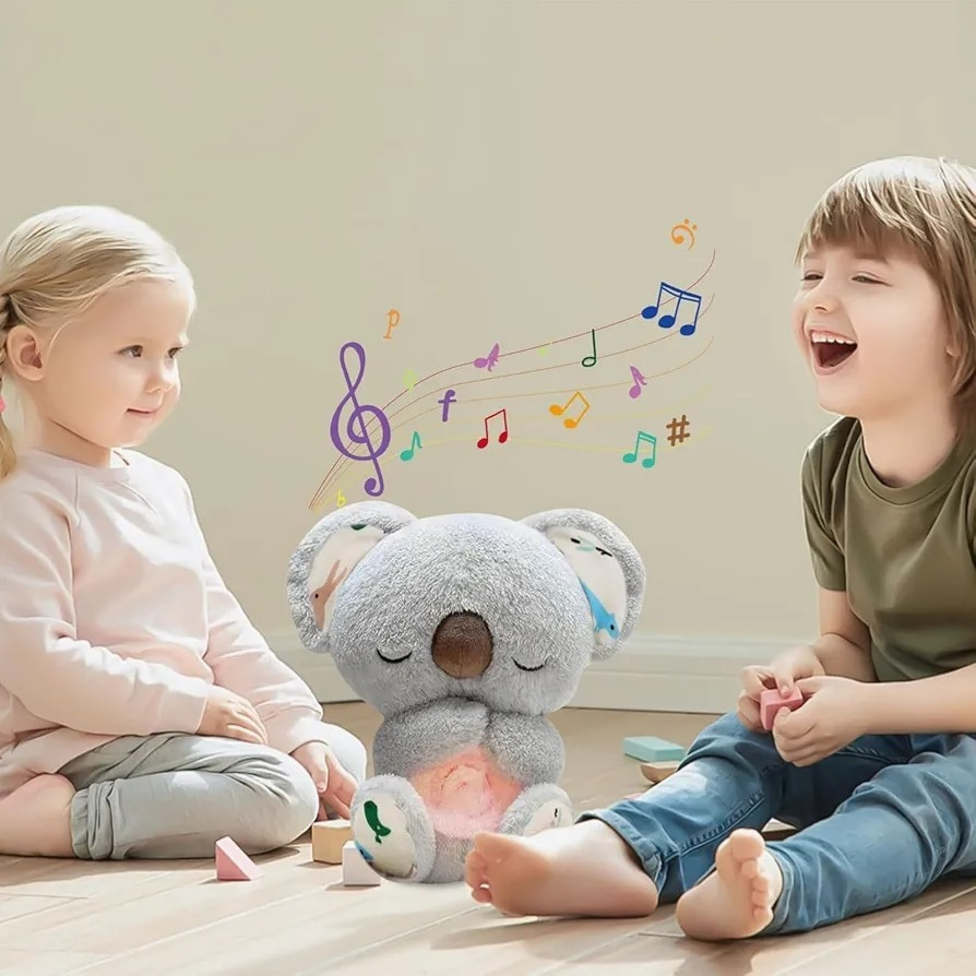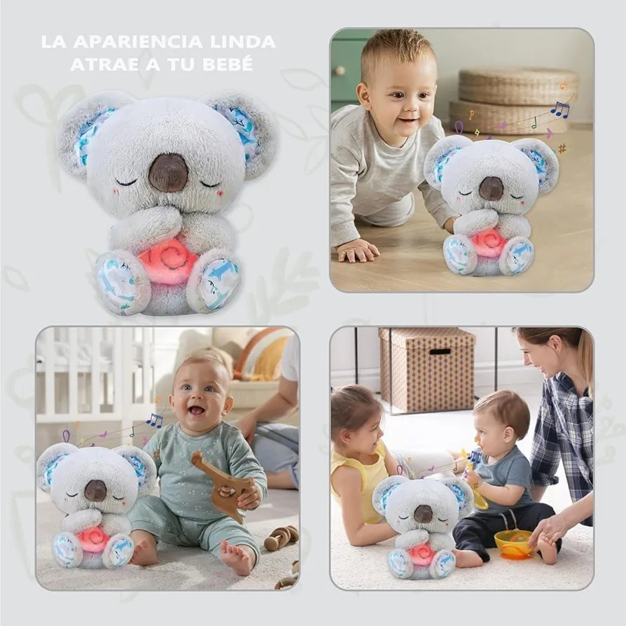 Este es un juguete de peluche único que ayuda a consolar a su bebé como usted. Su suave vientre se mueve hacia arriba y hacia abajo en ritmos similares a la respiración, ayudando a su bebé a relajarse de forma natural, acompañado de música relajante, efectos de sonido y poca iluminación.Con su linda cara, tejidos súper suaves y cola brillante, el koala es el abrazo perfecto para tu bebé. Juego y desarrollo combinados.