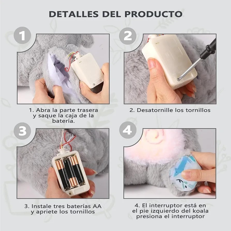 1. Descomprima el peluche para acceder al compartimiento de la batería.